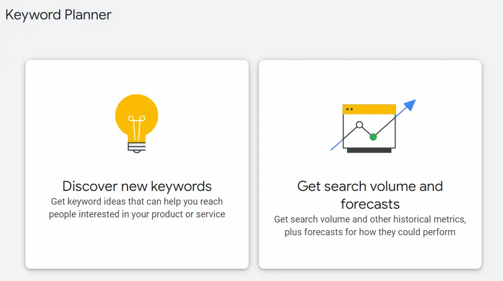 When troubleshooting for low search volume, check if your keywords are too specific or niche. Try to use broad matches or look for ideas to broaden search terms. You can find keyword ideas using Keyword Planner on Google Ads Manager. From there, you can create a plan or find forecast results for each keyword.