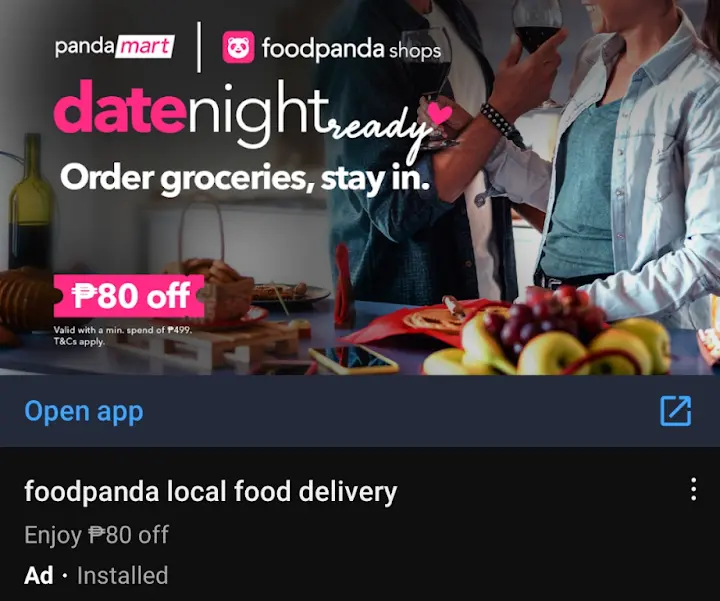 Food is always a must at any celebration. Foodpanda’s app promotions made it relevant in time for the Love season. Their display ads showcase an intimate couple prepping dinner for date night which complements its image headline. A promotional voucher is also featured to provide customers incentives to enjoy quality groceries for a lower price.