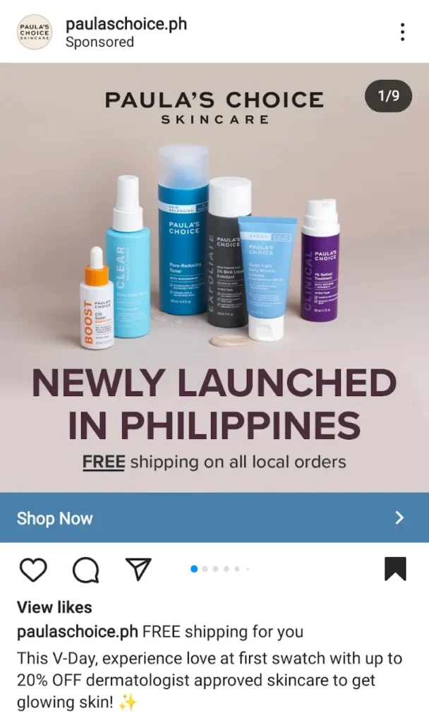 With this ad, they published a short form video featuring their cafe and its appealing menu. This makes a captivating and classy creative for the ad. Not only that, the brand is making people participate with very easy steps such as following and engaging on their Instagram page, creating posts with their date, and tagging the brand on it. Their offer is also quite generous and winning customers can receive ₱5,000 of credits at one of their branches. This combination makes a winning advertisement for brand awareness and engagement.
