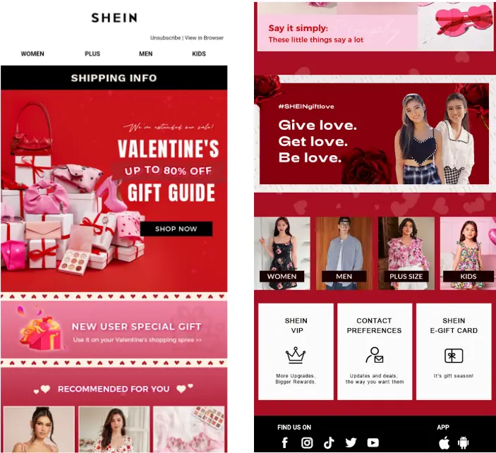 In time for Valentine’s Day, Shein ramped up their email marketing with useful content for their audiences. Providing tailored recommendations produced great value for customers. Good content marketing is creating valuable and relevant content for clearly defined customers which can drive customer acquisition.