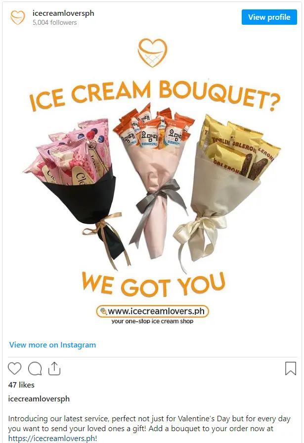 For their marketing efforts this season, their creatives showcase it straight to the point. Customers can buy bouquets of ice cream instead of the usual flowers.
