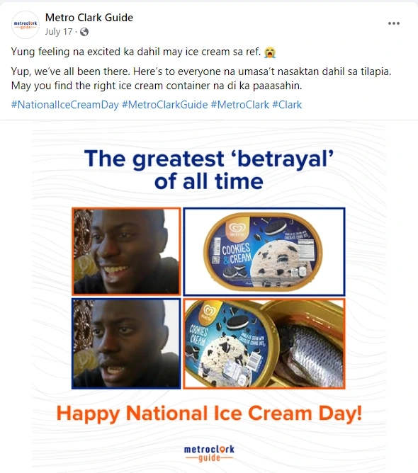 Humor is one of the most popular content types on social media. By appealing to your audience differently, these types of content help your audience see you as more than just any business or company. You can add fun and variety to your posts by trendjacking on fun or unique holidays, and memes. Just be sure to avoid including insensitive and discriminatory jokes in your posts.