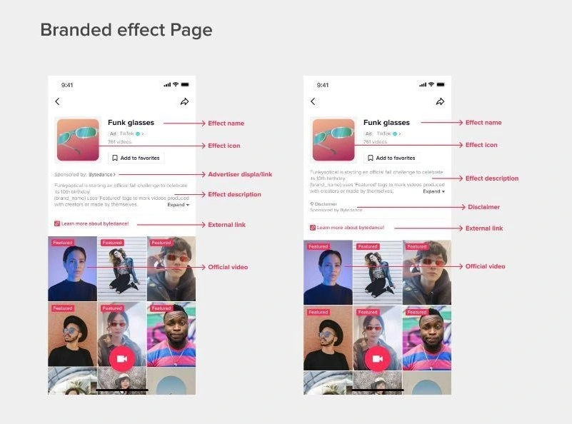 TikTok branded effects ads are short videos that feature a brand’s logo or product as part of the video’s effects. These ads are designed to grab users’ attention and encourage them to engage with the brand and can be used to promote a product, introduce a new service, or even create a fun and memorable experience for users.