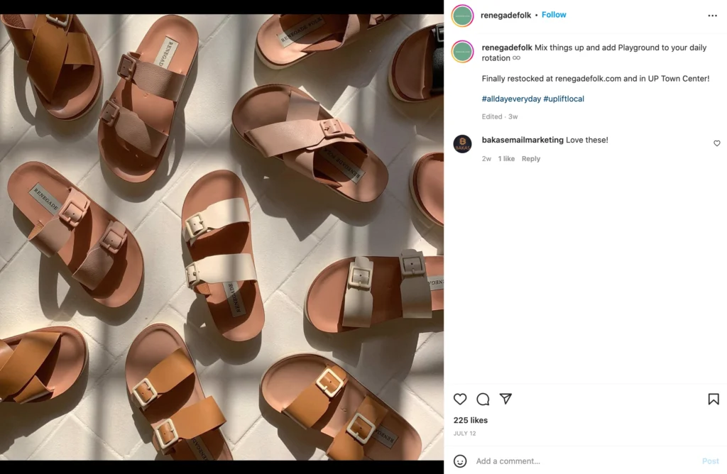 Moreover, you can also create content with copies that include tips or advice related to the product. For example, if your online store is about shoes or slippers, you can give helpful suggestions on cleaning them or what clothes or colors best match them.