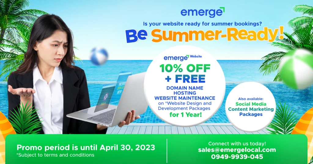 With this summer-ready deal, business owners can enjoy FREE domain name, hosting, and website maintenance on top of the 10% discount for every web design and development packages. They can surely enjoy their dream summer vacation while Emerge takes care of their website while they’re away.
