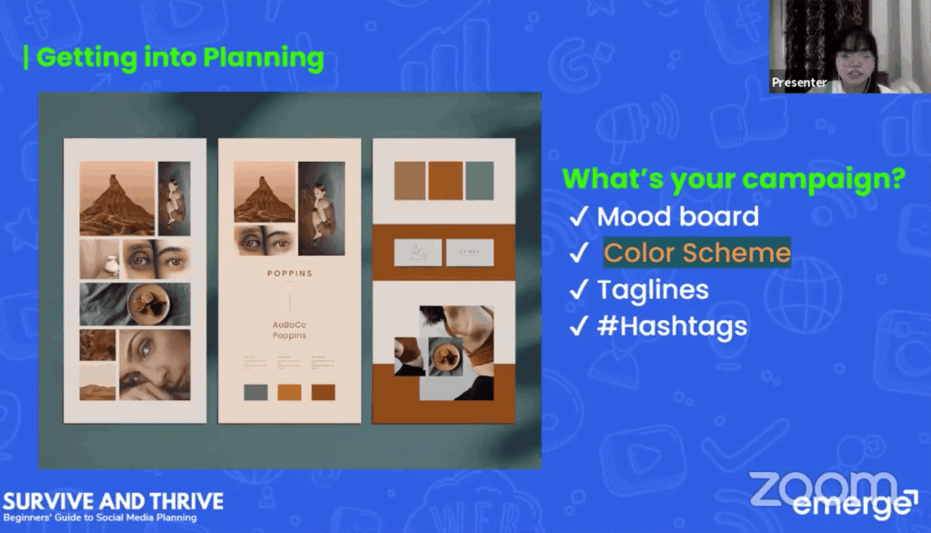 To aid businesses on digital marketing and social media content, Emerge conducted its second Survive and Thrive webinar with the topic: “A Beginners’ Guide to Social Media Planning,” presented by Fenina Isabel Gerero, an Emerge Jr. Brands and Communications Specialist, held October 27, 2021, through Facebook live.