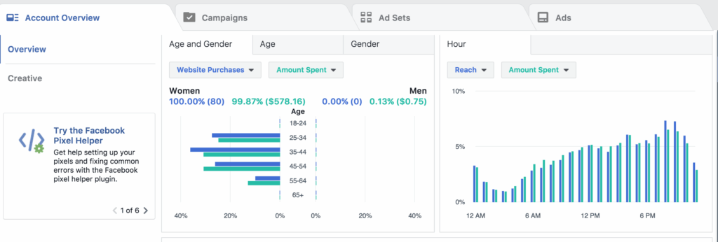 You can even see how the campaigns perform based on age, gender, hour, and location.