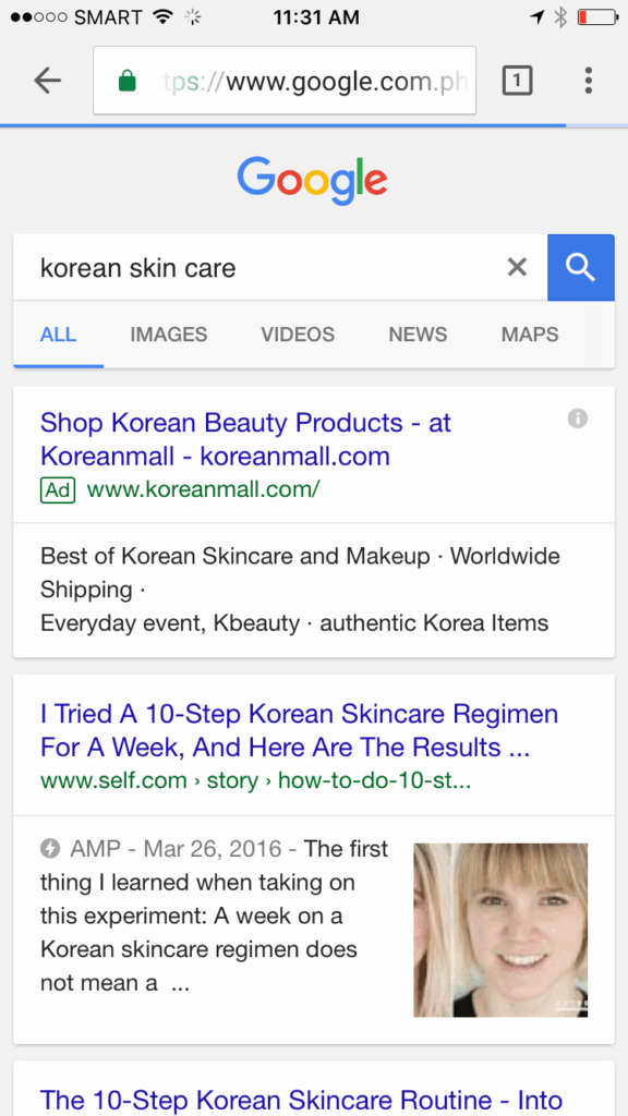 Mobile Device Google Ad Search Result