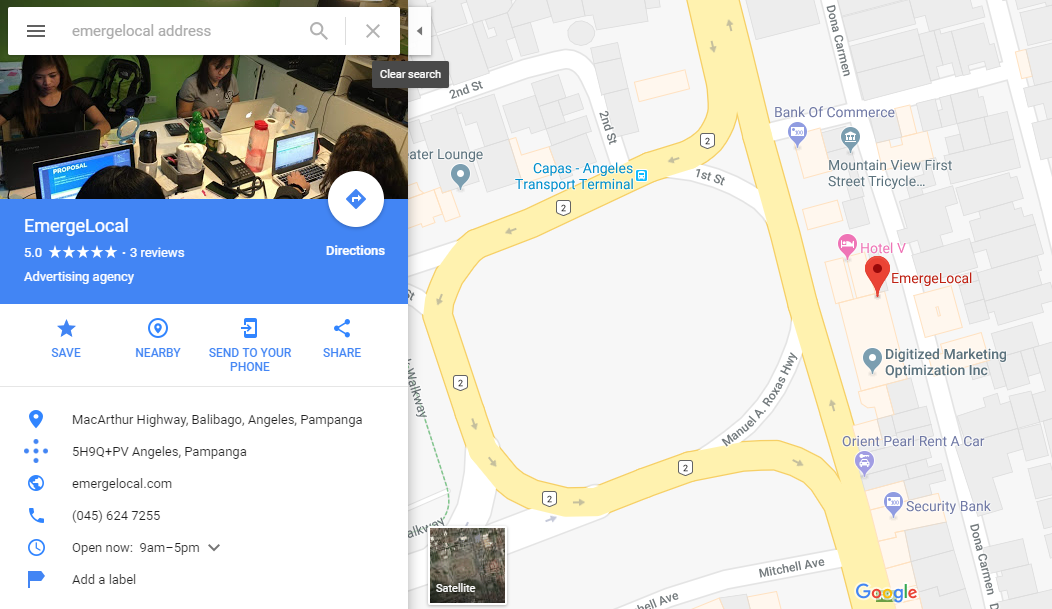 Let’s say when someone searches for a “skin care clinic in Pampanga”, you want your website to appear on Google search and Google Maps. With Google Maps location system, your customer will be able to see how far away you are and how to get to your clinic.