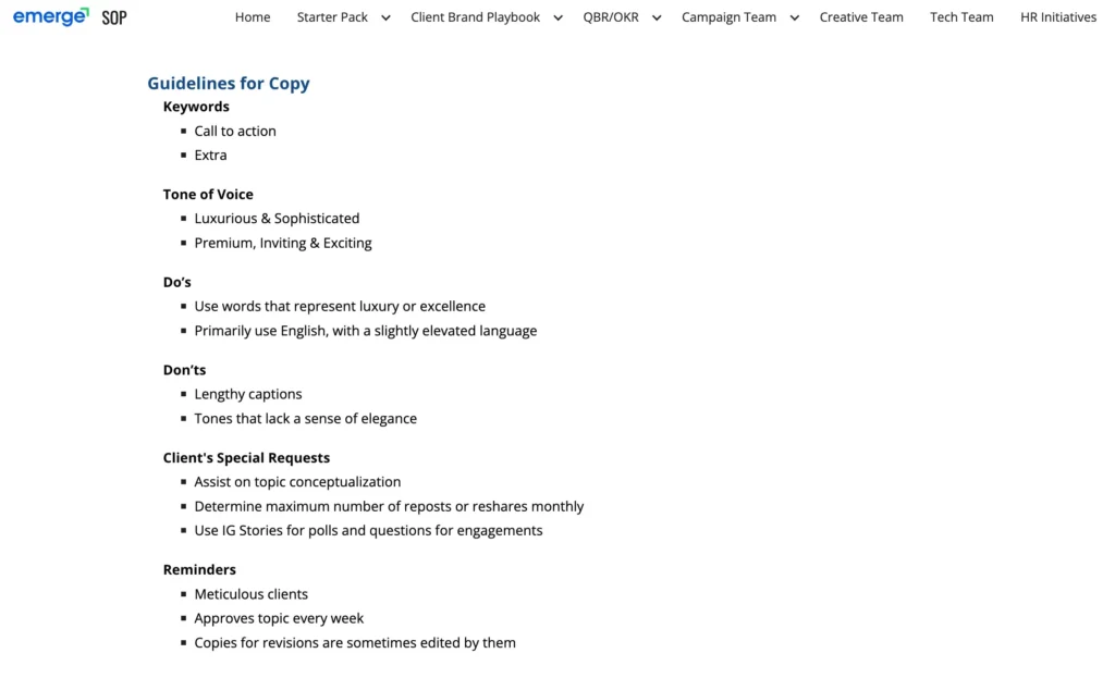 Moreover, it may also contain other important guidelines, processes, and reminders about your social media strategy.