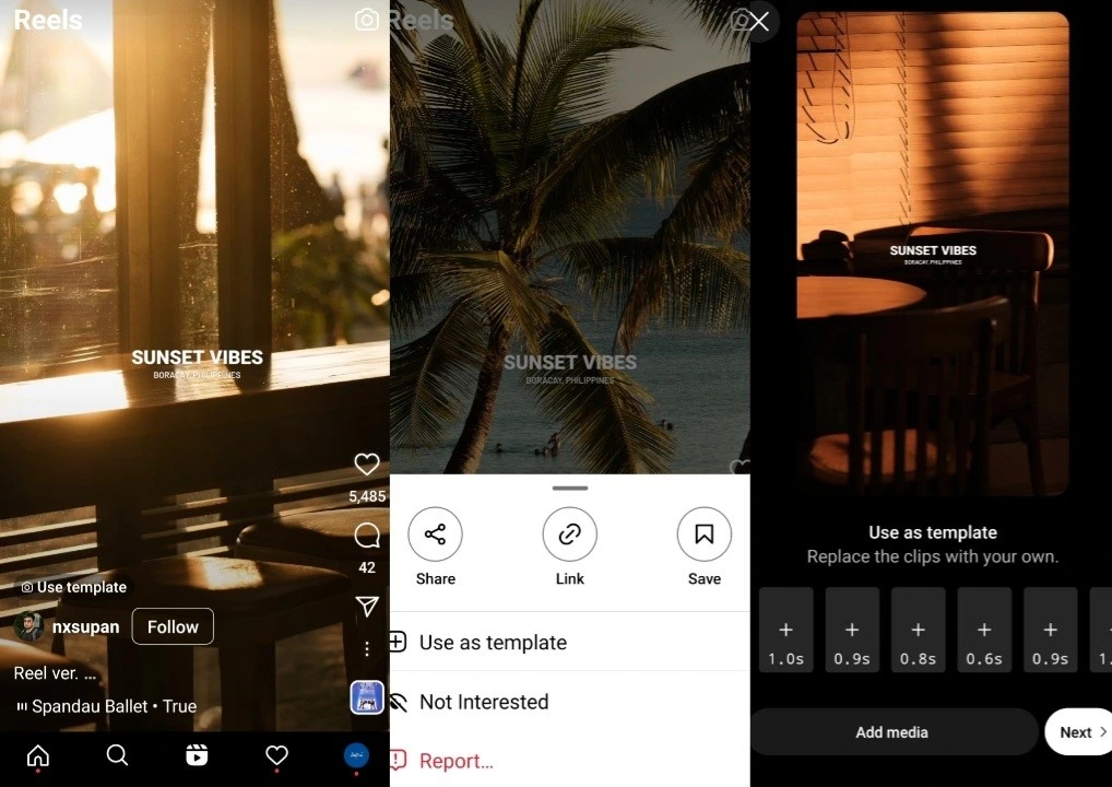 - Step 3: At the bottom, choose Add Media and select the photographs and video clips you wish to utilize in your Reel. These photos will take the place of those in the original Reel.