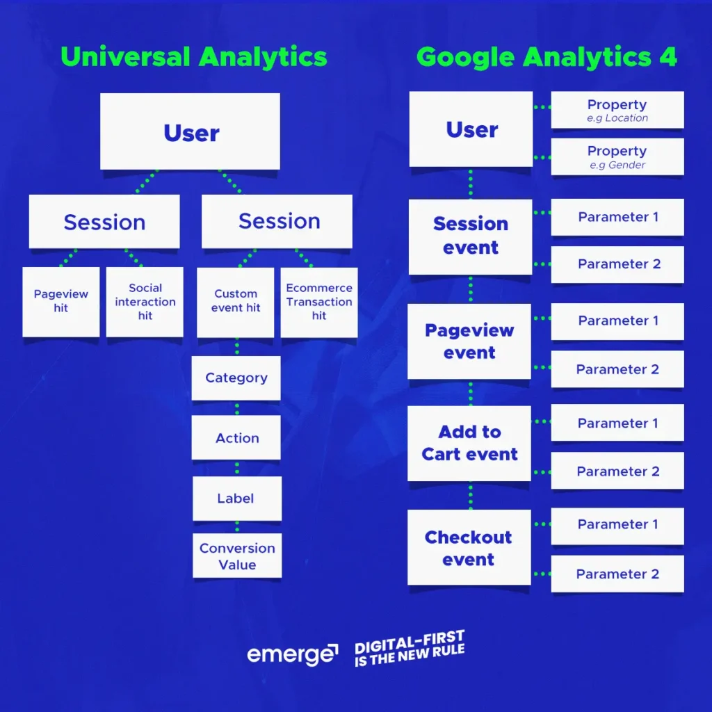 How does GA4 differ from Universal Analytics?